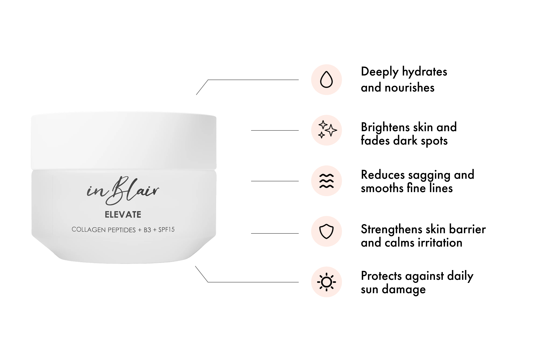 Because dry skin exaggerates fine lines and wrinkles, Elevate uses Sodium Hyaluronate – a smaller, more absorbable form that penetrates deeper to replenish water levels in the skin.