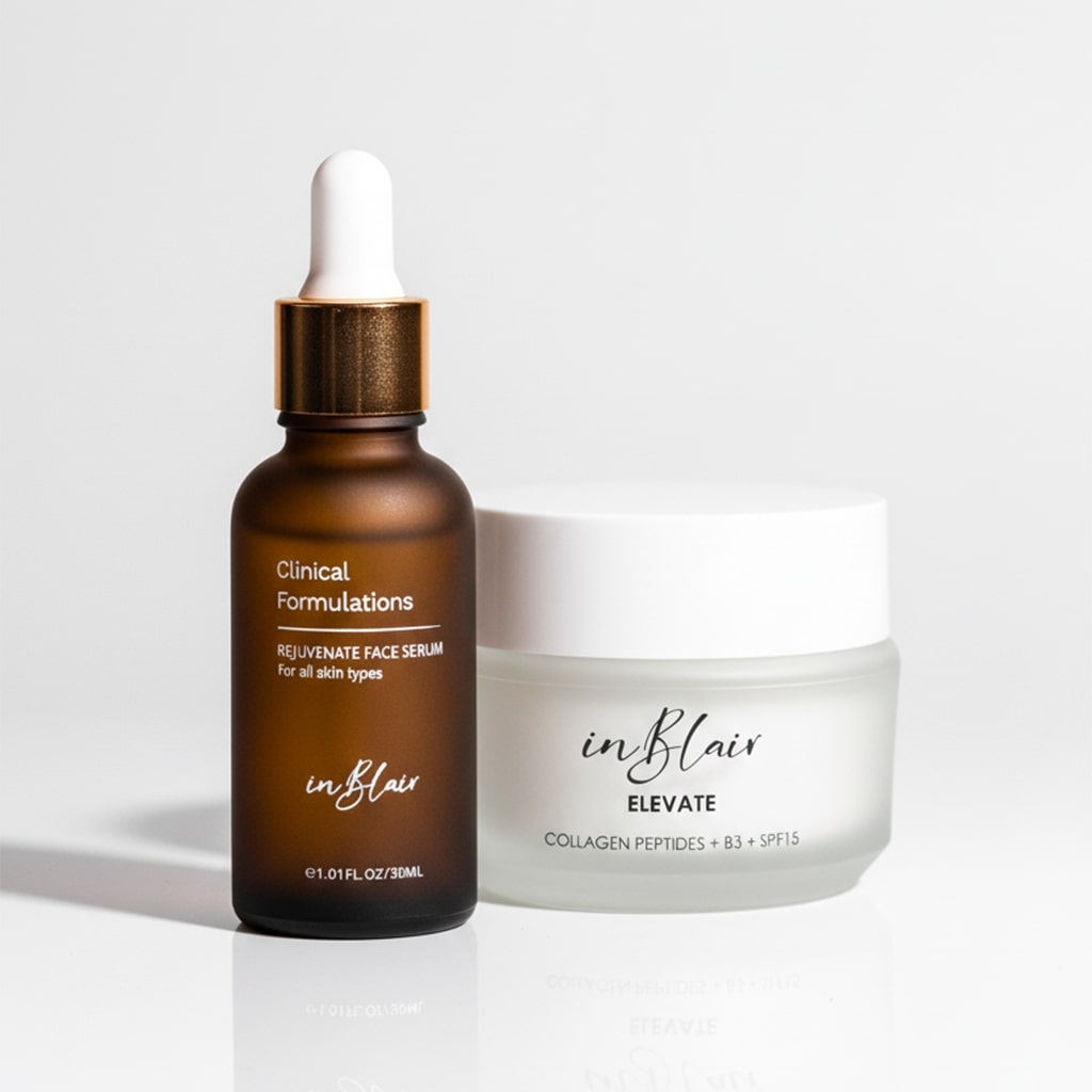 1x Elevate Moisturizer (50 mL / 1.69 fl oz.) – A rich, restorative cream with Collagen Peptides and Niacinamide (Vitamin B3) that locks in moisture, strengthens the skin barrier, and supports overnight skin repair.